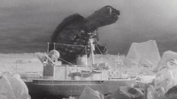 With all that said, Gammera is still fundamentally Gamera, right? Which means it is great the ol’ turtle in action, whatever the particulars. Gamera is such as unique with more powers and abilities than Batman’s utility belt. The black & white film also proves effective here; the light from Gamera’s fire breath looks gorgeous in the contrast.